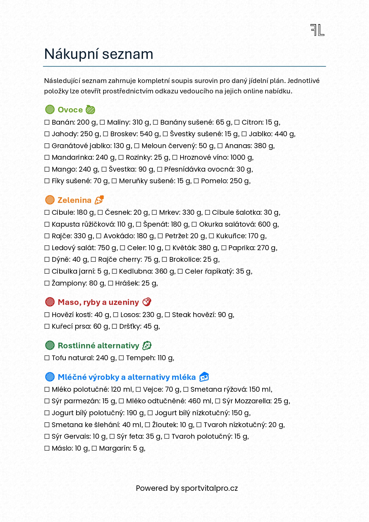 Běháš, chodíš do fitka, na kolo nebo skupinové lekce a chceš se cítit lehčeji, silněji a mít víc energie? Jídelníček zapadne do práce, školy i rodiny.